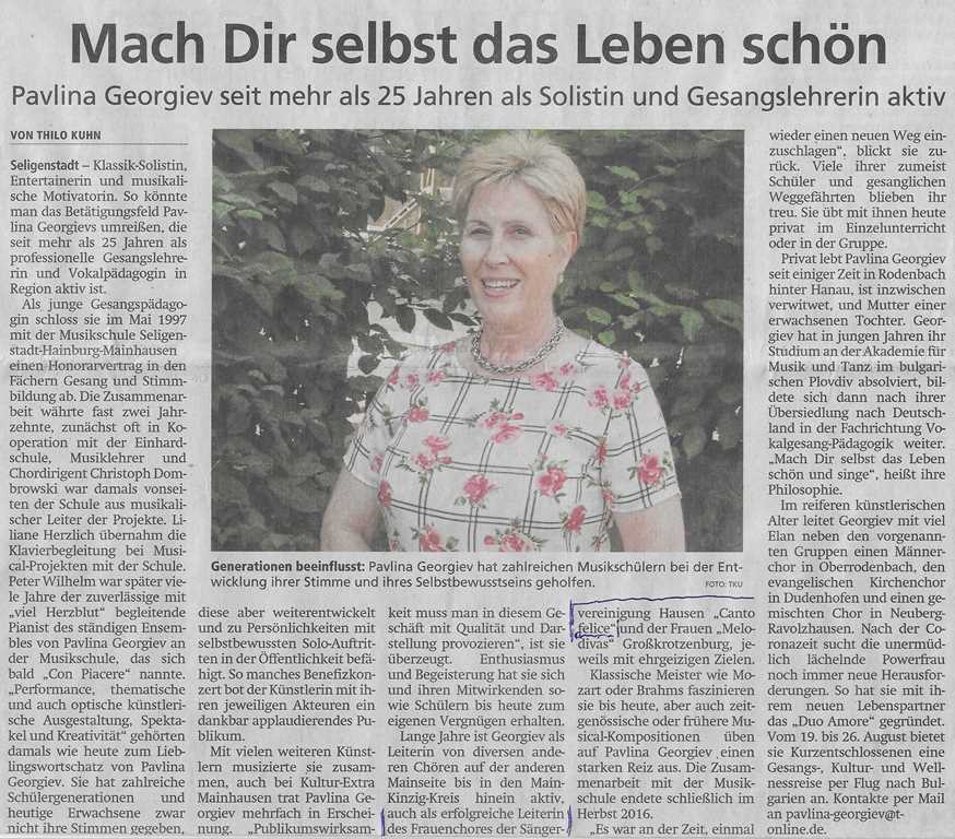 Die Dirigentin unseres Frauenchores Canto felice, Pavlina Georgiev, feierte 25 Jahre aktiv als Gesangslehrerin und Solisten.