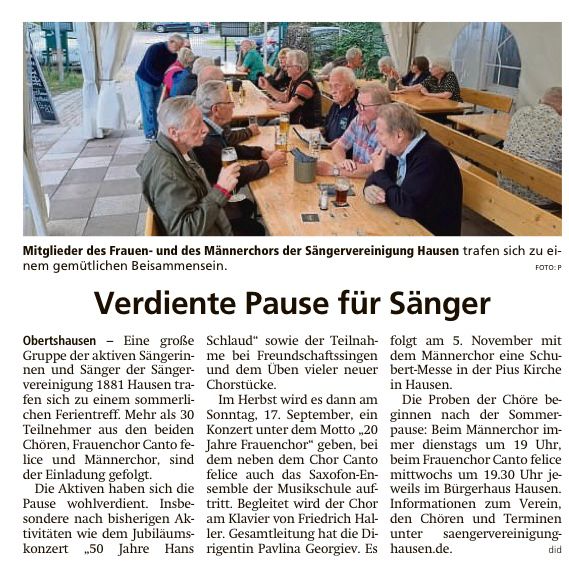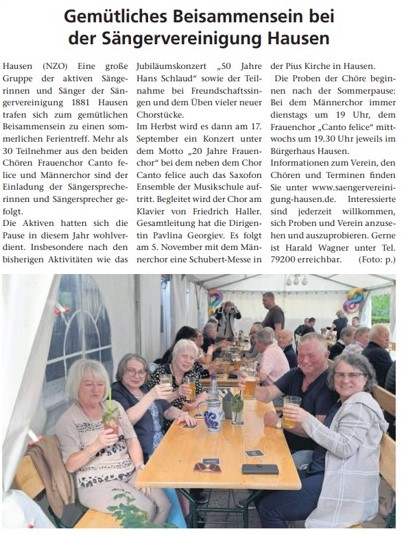 Unsere Sängerinnen und Sängersprecher hatten dieses Jahr zum Sommertreff eingeladen und viele Sängerinnen und Sänger kamen. Übrigens: 2014 war der letzte Sommertreff.