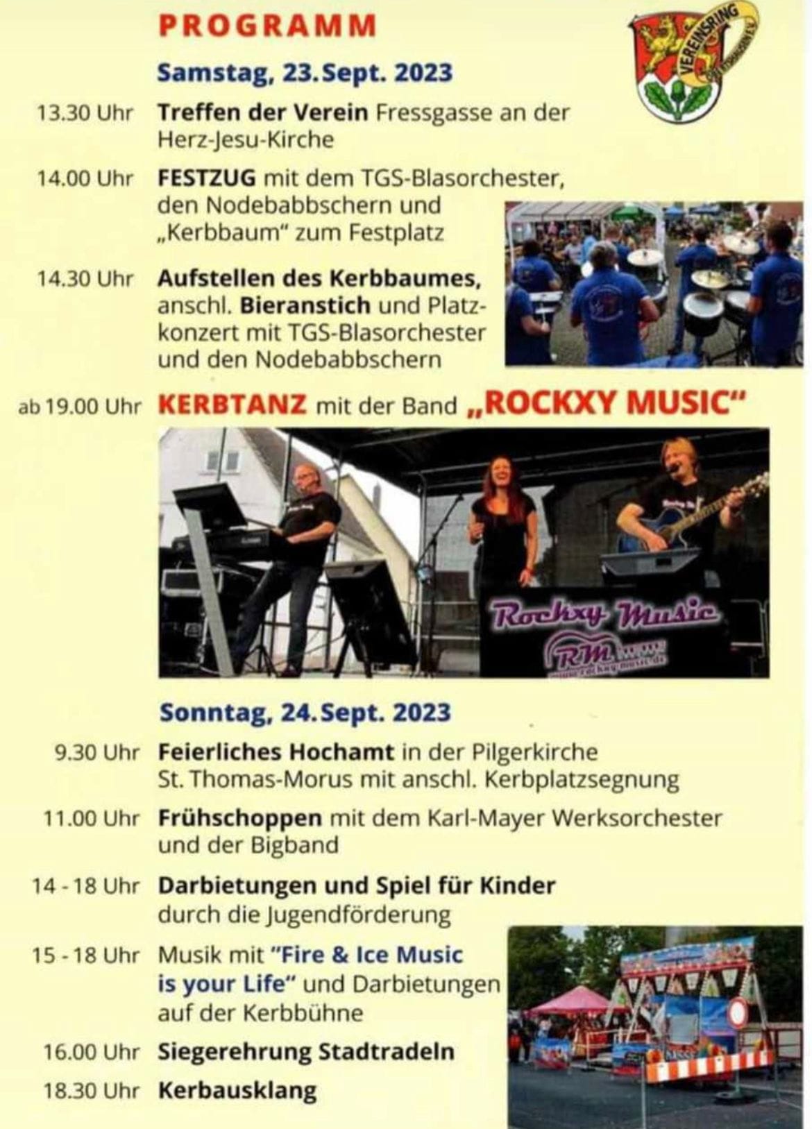 Einladung zur Kerb, wir sind mit unserem Weinstand dabei. Beim traditionellen Festzug hatten wir unsere Traditionsfahne dabei.