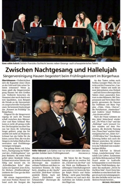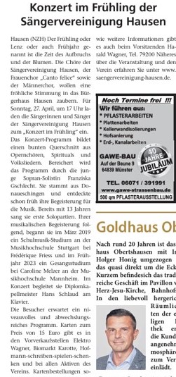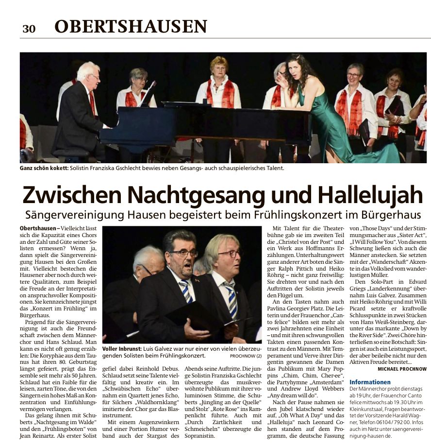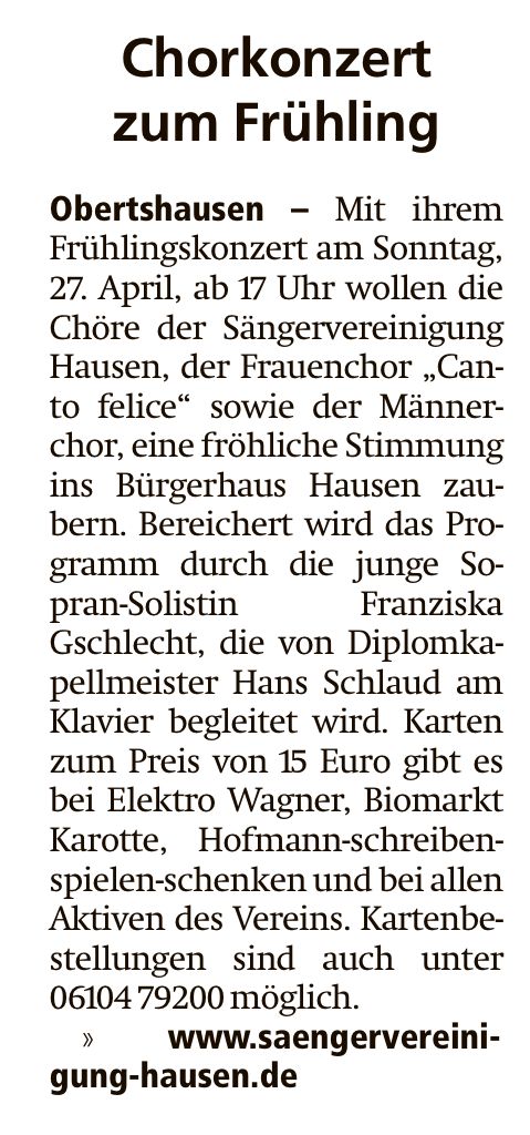 Gut Besucht war das Konzert Im Bürgerhaus Hausen mit den Chören der Sängervereinigung und mit Solistin Franziska Gschlecht.