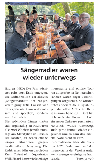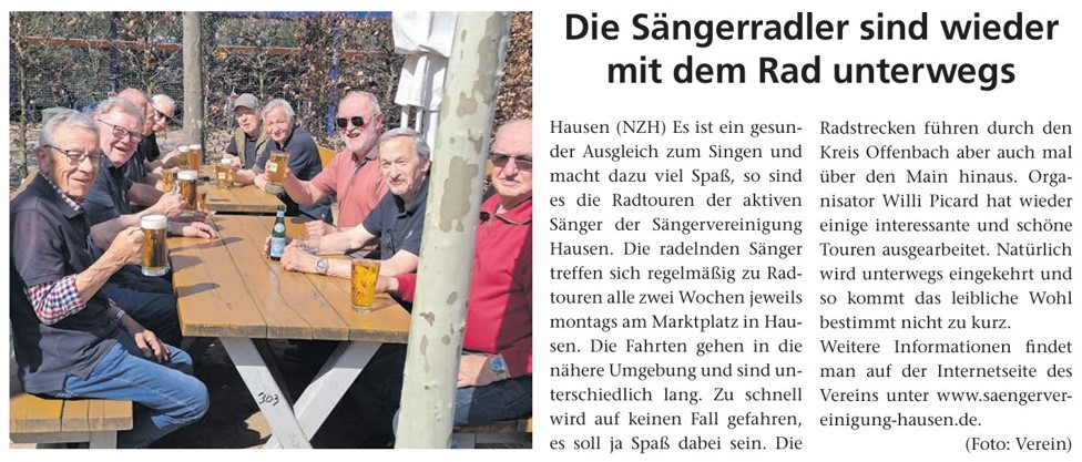 Und wieder sind Sänger zum regelmäßigen Radeln unterwegs