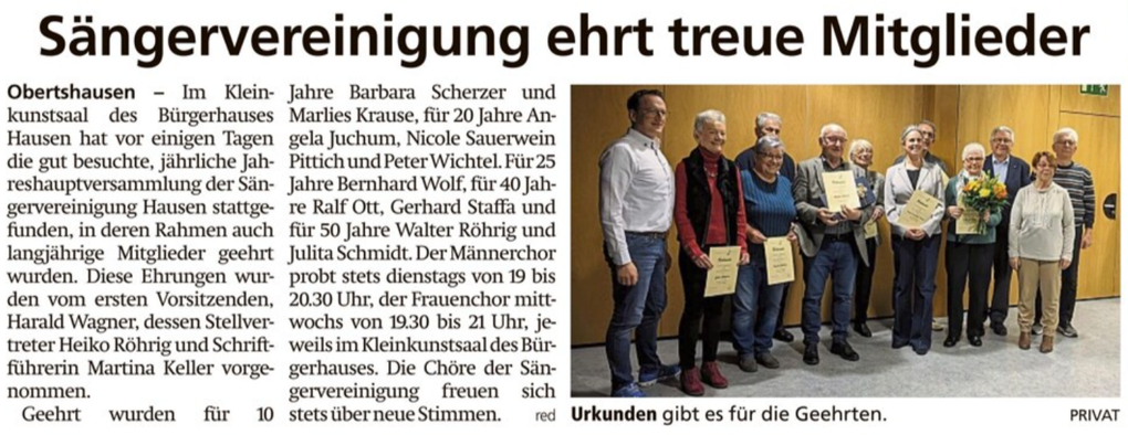 Jahreshauptversammlung und Mitgliederehrung